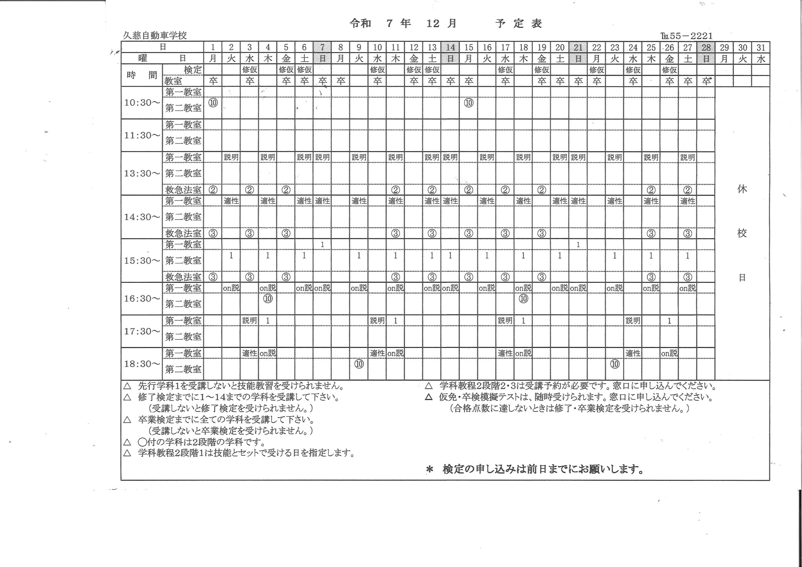 2025年12月の学科予定表を掲示しました